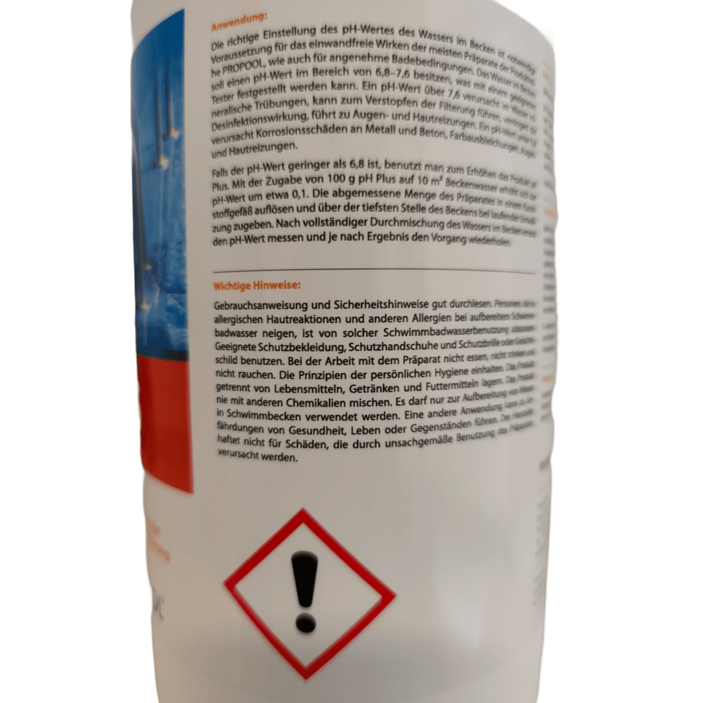 Ακολουθείτε πάντα τις οδηγίες χρήσης και ποτέ μην αναμιγνύετε κόκκους pH plus με άλλες χημικές ουσίες. Αυτό το προϊόν προορίζεται αποκλειστικά για την επεξεργασία νερού σε πισίνες και ο κατασκευαστής δεν φέρει καμία ευθύνη για ζημιές που προκαλούνται από ακατάλληλη χρήση.