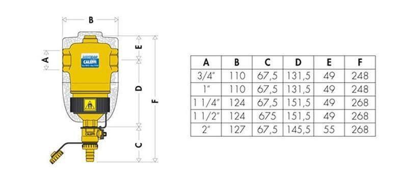 Sonraí teicniúla deighilteoir sloda Caleffi: