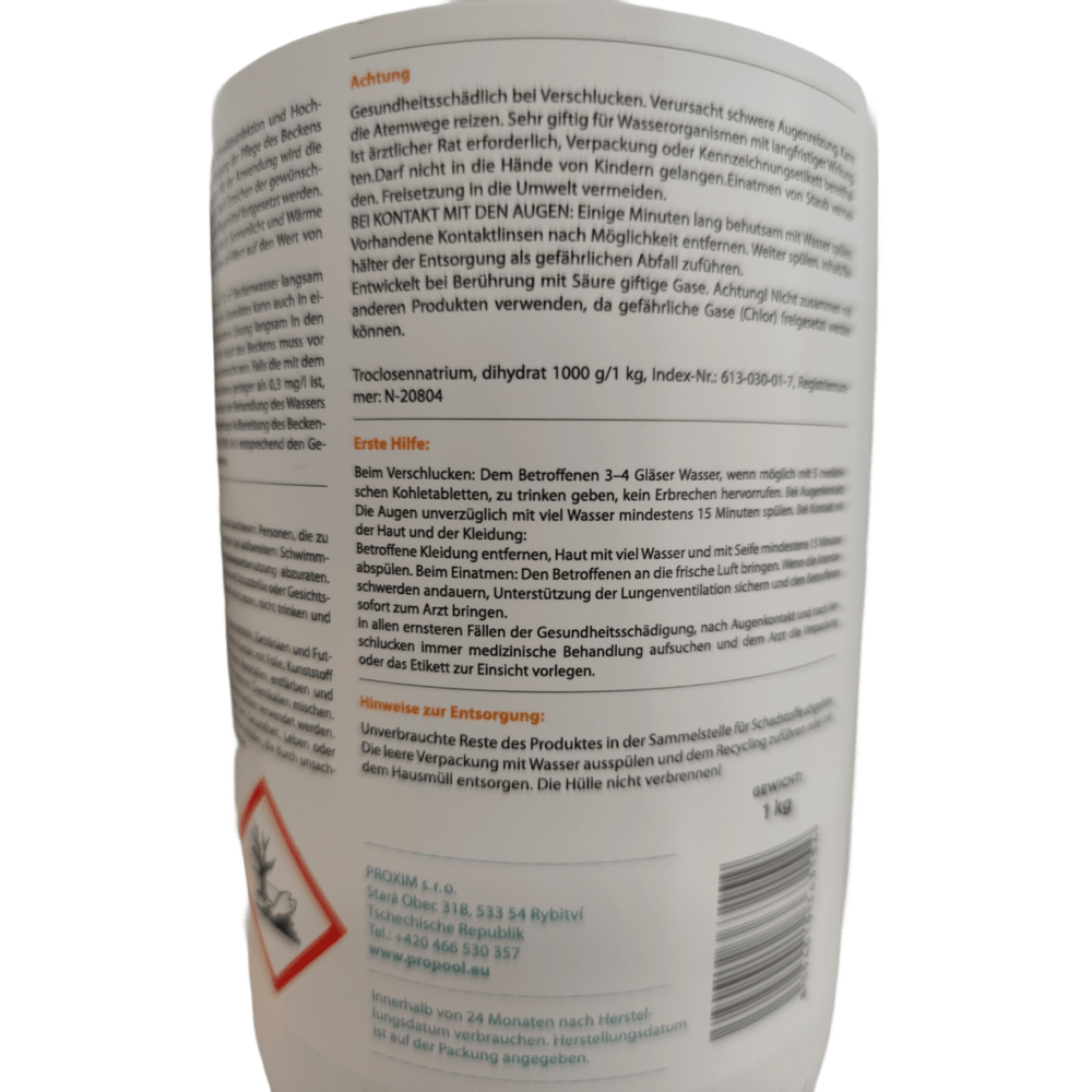 Használat közben Klór granulátumok Mindig kövesse a csomagoláson található biztonsági utasításokat. Ez a termék biocidként szolgál, és nem megfelelő kezelés esetén súlyos szem- és légzőszervi irritációt okozhat. Emellett erősen mérgező a vízi élőlényekre, és hosszan tartó hatásai vannak, ezért a környezettel való érintkezést mindenképpen kerülni kell.